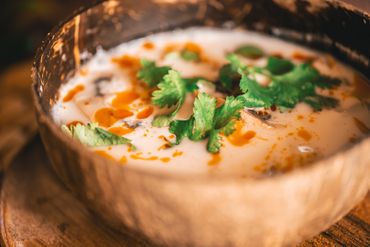Creamy coconut milk simmered with galangal, onions, bell peppers, and mushrooms. Gluten-free. Spicy. Chicken, vegetable tofu OR shrimp